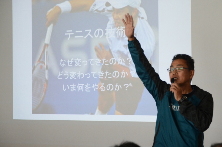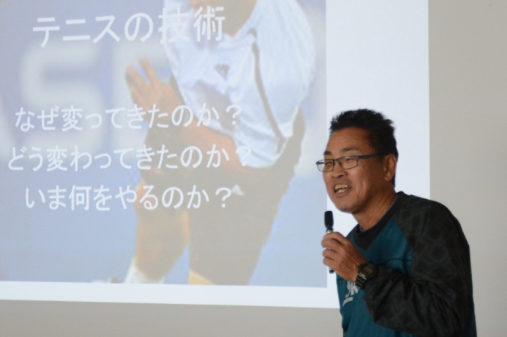 「冬季研修会」(12月6日(土))では150名を超える公認指導員が出席し、野村進講師の「テニスの技術 =なぜ変わってきたのか? =どう変わってきたのか? =いま何をやるのか?」について変化した要因、世界との差は何か、どうすべきなのかについて理論、その指導方法を会得しました。